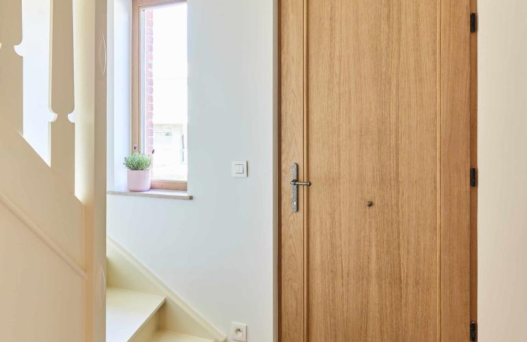 Het kiezen van de juiste ramen en deuren is essentieel voor het creëren van de gewenste sfeer in een huis. De nieuwe ramen en deuren in het Blind Gekocht project in Hasselt zijn niet alleen stijlvol; ze zorgen ook voor een betere isolatie, zowel thermisch als akoestisch. Door te kiezen voor pvc ramen met fijne profielen en steellook kruishouten in een stijlvolle grijsgroene kleur, in plaats van volledig aluminium steellook ramen, profiteren Mevin en Pieter niet alleen van een even verfijnde look, maar ook van een budgetslimmere en superisolerende oplossing.