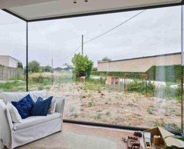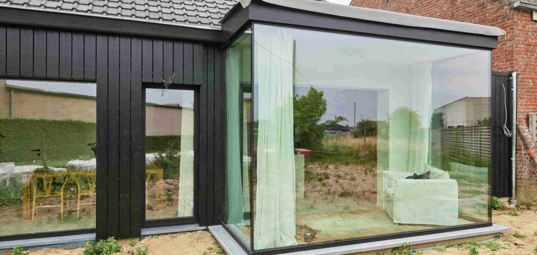 Deze erker laat het licht van alle kanten binnenstromen. Dankzij glas-op-glas verlijming verdwijnen de profielen op de hoek, waardoor een open zichtlijn ontstaat die binnen en buiten op een elegante manier met elkaar verbindt. De ruimte voelt lichter, ruimer en maximaal verbonden met de omgeving. En wist je dat deze glas-op-glas hoekaansluitingen ook op vlak van isolatie hun mannetje staan? Dankzij een speciale isolerende kit en dubbele of driedubbele beglazing geniet je binnen van optimaal comfort.