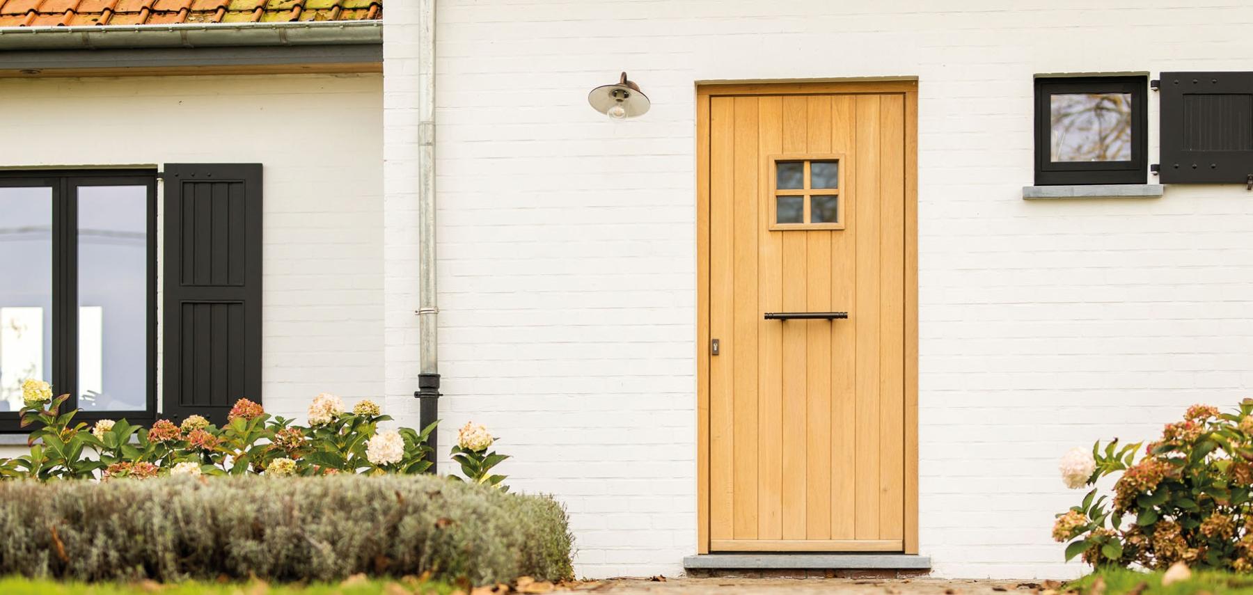 Vaak wordt de voordeur van een landelijke woning afgewerkt met een glaspartij bovenaan of in de deur, meestal met kruishouten op het glas. De glaspartijen geven niet alleen een mooi, landelijk karakter aan je deur, maar laten ook een streepje daglicht binnen in de inkomhal. Win win!
