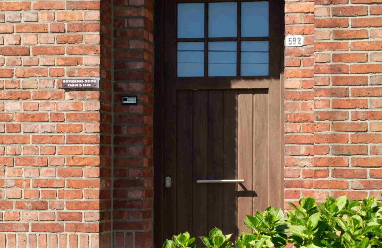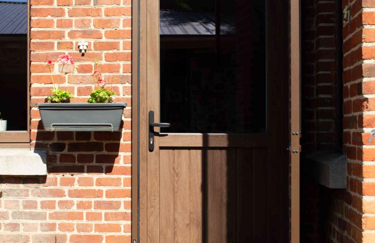 In Tienen plaatste KwadrO Diest pvc ramen en deuren in de warme houtlook Woodec Donkere Eik. Een perfecte match met de charmante, tijdloze woning die een knipoog geeft naar het landelijke karakter: stijlvol én onderhoudsvriendelijk