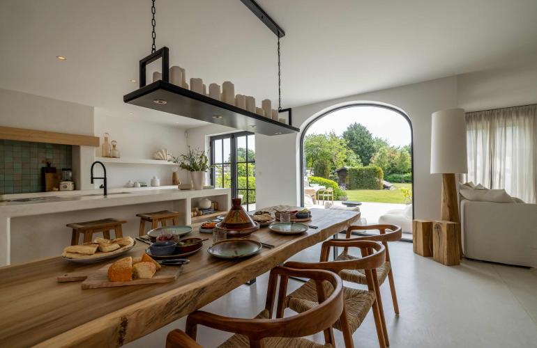Bij familie Matthijs - Geypen in Nijlen plaatste KwadrO aluminium steellook ramen in combinatie met een karaktervolle houten voordeur. De landelijke gevel krijgt zo een tijdloze uitstraling, terwijl het lichte Ibiza-interieur binnen meteen een zalig vakantiegevoel oproept. Elke dag een tikkeltje zomer, gewoon thuis!